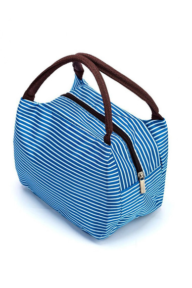 Фото товара 17045, термосумка для ланч-бокса в полоску «горячий обед» синяя